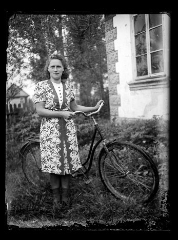 ok. 1940 - 1945, portret kobiety z rowerem