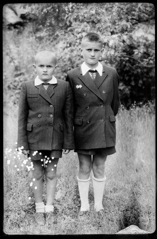 ok. 1950, portret dwóch chłopców w plenerze