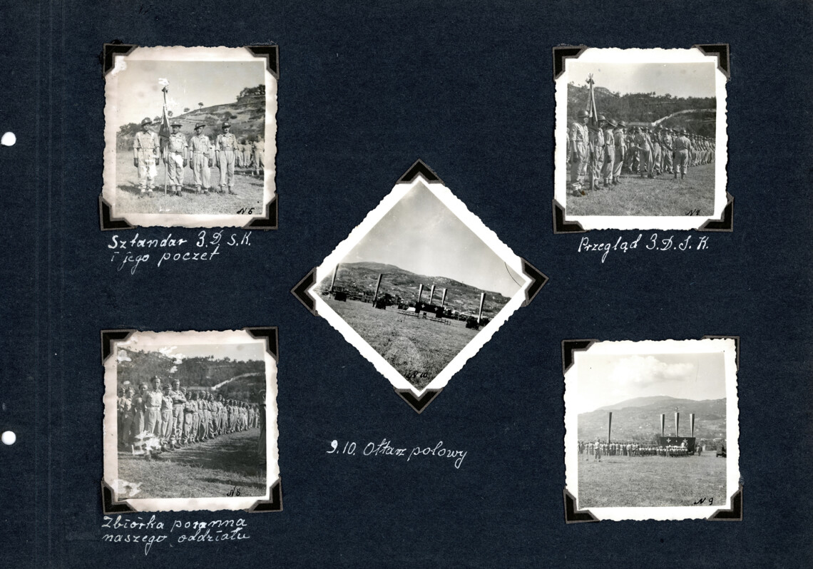 Karty z albumu z odbitkami fotograficznymi z kampanii włoskiej lata 1944 - 1945 z opisem ręcznym