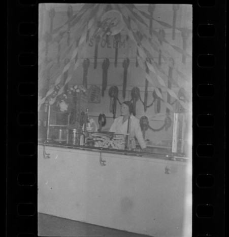 Zdjęcia dowodzą, że Augustis nie tylko chodził po mieście, wchodził w jego zakamarki, ciasne podwórka, do ogrodów, szkół, sklepów, bywał na rautach i eleganckich balach, ale też zaglądał na prywatne uroczystości. Jak choćby tę, w której uczestniczy przed wojną rodzina Lechowskiego. W domowych pieleszach do zdjęcia pozuje, bagatela, 14 osób. Wszyscy na głowach mają śmieszne kucharskie czapki, odziani są w fartuchy, w dłoniach trzymają rozmaite kuchenne ustrojstwa: łyżki, chochle, warząchwie, tarki, trzepaczki…