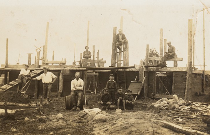 1930, budowa chlewu przy domu Łukuciów (fotografował Berkowski)