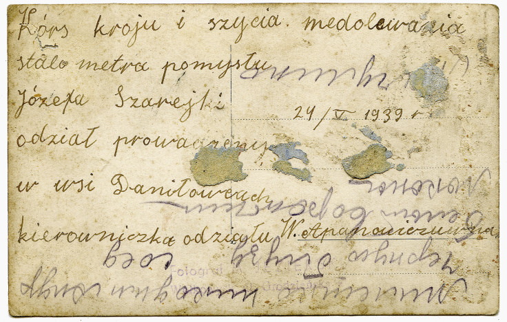 24 maja 1939, Daniłowce, po środku z torebką Weronika Apanowicz (babcia Andrzeja Mialeszka), kierowniczka „kursu kroju, szycia i modelowania stalometra pomysłu Józefa Szurejki”.