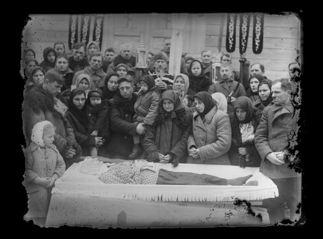 Etnograf uważa, że zdjęcia te robione były na chwilę przed tym zanim ruszył kondukt. Na pogrzeb przychodziła cała wieś, nie trzeba było być zaproszonym. Wystawiano trumnę przed dom, na chwilę otwierano wieko, żeby fotograf mógł zrobić pamiątkowe zdjęcie. Zwraca uwagę to, że wielu nieboszczyków nie ma butów.