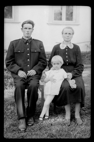 ok. 1960, portret grupowy w plenerze, kobieta, mężczyzna i dziecko